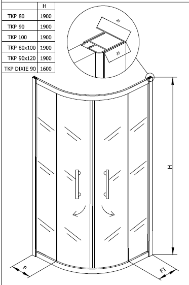 Розмір вбудованих душових піддонів: 78 - 79.5 x 98 - 99.5 см