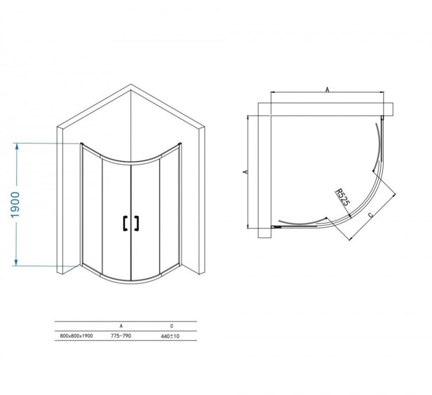 1) Душова кабіна Primera Prime розсувні 80х80 хром / прозоре скло