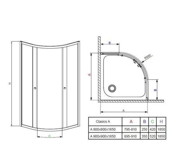 Душова кабіна Radaway Classic A 90x90 скло прозор + піддон + сифон (30000-01-01 + S4TIA9090-08 + ТВ50Р)
