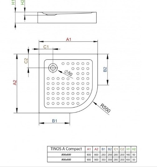 Піддон Tinos A Compact 90x90 напівкруглий: