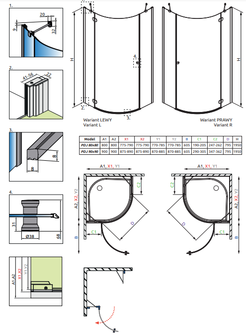 - Можливість монтажу без планки порога.За мовчанням покупець отримує всі комплектуючі, необхідні для монтажу, так з планкою порога, як і без неї. Докладніша інформація в інструкції з інсталяції.