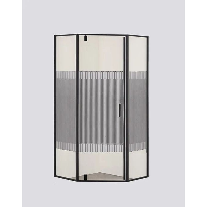 Душова кабіна Sansa 90х90 см профіль чорний/скло прозоре з візерунком SH-90BL (T)