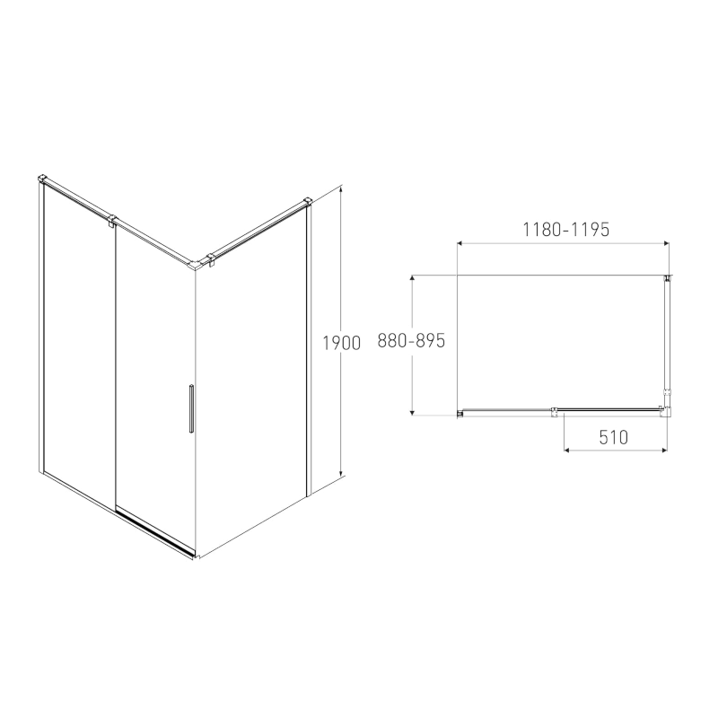 1) Душова кабіна Volle Leon раздвіжная120х90 см хром / тоноване скло