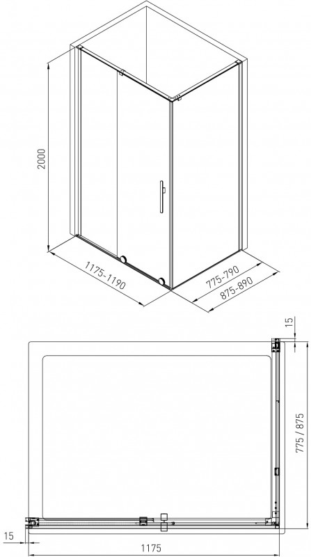 1) Душова кабіна Volle Teo 117,5х87,5 профіль хром / прозоре скло