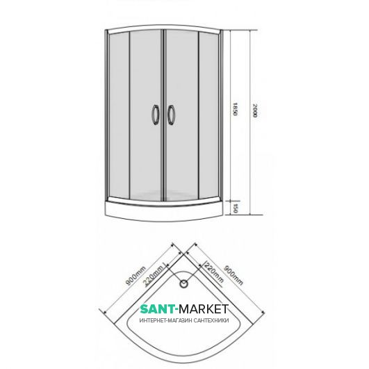 Профіль хромований, без піддону, загартований GREY скло 6 мм, подвійні металеві ролики, регульований подвійний пристінний профіль