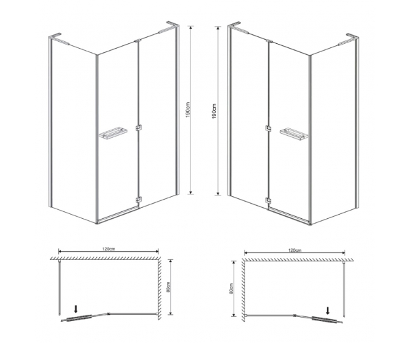 Душова кабіна Eger Megerka 120х80 ліва фурнітура хром тоноване скло