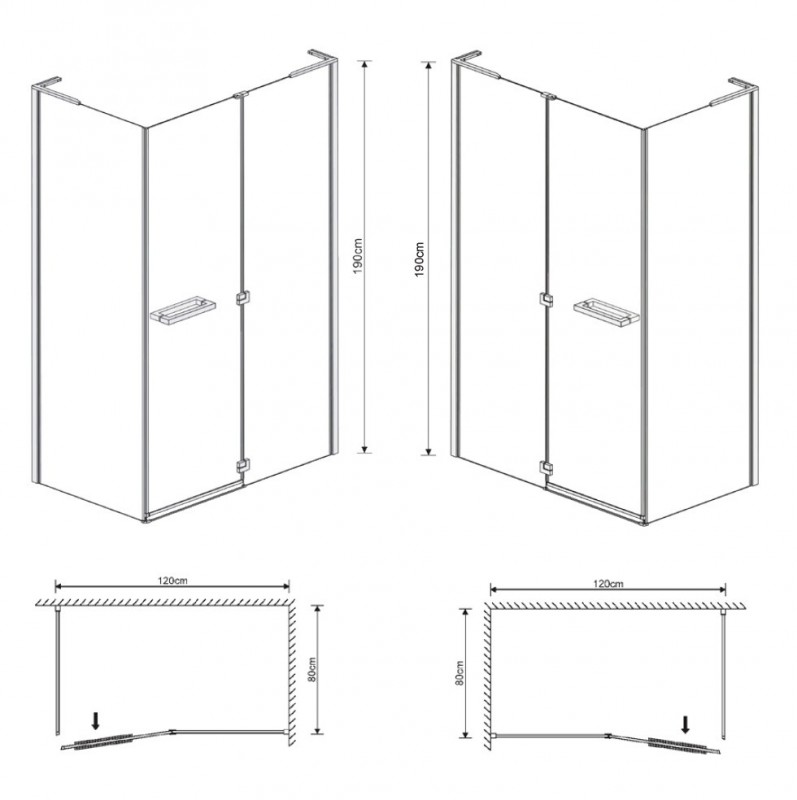 Душова кабіна Eger Megerka 120х80 права фурнітура хром прозоре скло