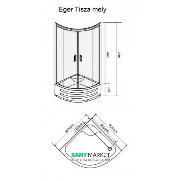 Душова кабіна Eger Tisza Mely 90х90х200 високий піддон 599-187