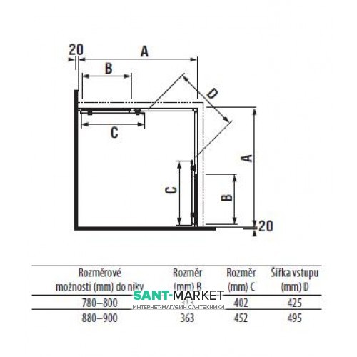 Розміри: 900х900х1900 мм