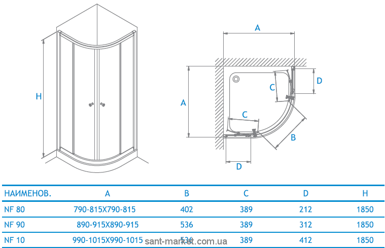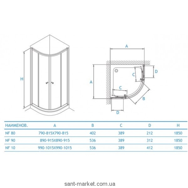 Душова кабіна Koller Pool 80х80х185 без піддону NF80