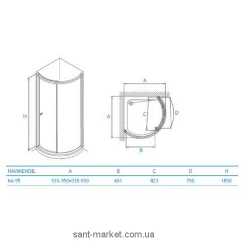 Душевий куточок Koller Pool NA95 з боковим входом. Напівкругла душова кабіна складається з двох частин. Нерухлива стінка та розсувні двері на роликах. Цей виріб є універсальним – можливе використання як у лівому, так і в правому кутку. При виробництві душових кабін Koller Pool застосовується високоміцне та безпечне скло завтовшки 6 мм. Скляні двері закриваються щільно – вам не доведеться після кожного прийому душа боротися з потопом у ванній кімнаті. Подвійний ролик робить безшумним рух дверей в процесі експлуатації, а хромовані ручки надають стиль загальному дизайну. Нижні ролики з механізмом розфіксування спрощують догляд за кабіною, а хромовані ручки надають кабіні відчуття.продуманості та комфорту. Кутник можна монтувати безпосередньо на підлогу, або на спеціальний піддон EA 95.