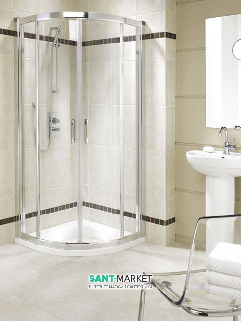 Душева кабіна Geo 6 напівкруглої форми прикрасить будь-яку ванну кімнату. Складається із двох прямих стінок та двох вигнутих дверей, які утворюють кутовий вхід. Не містить гострих кутів, всі вони закриті спеціальними планками та заглушками. Виріб виконаний із міцного безпечного скла та алюмінієвого профілю кольору хром. У кабінах використовуються міцні одиночні підшипникові ролики. Geo 6 порадує високою якістю, неперевершеним комфортом та зручністю.