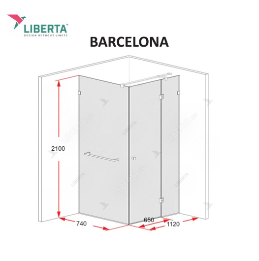 1) Душовий куточок Liberta Barcelona 112 * 74