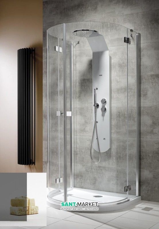 Almatea P - це напівкругла пристінна душова кабіна з двостулкових орної дверью.Коллекція Almatea це безпрофільні кабіни з дверима, які відчиняються назовні. Кабіни дозволяється встановлювати як на піддон, так і безпосередньо на підлогу (але завжди з планкою порога). У разі установки на плитку рекомендуємо душові плити RadaDrain - для забезпечення гідроізоляції, зливу води в правильному напрямку і швидкості монтажу. Almatea це хіт продажів через оптимального відношення ціни до якості. Головною особливістю даної душової кабіни є їїнеповторний дизайн, а також особливо широкий вхід на всю ширину.