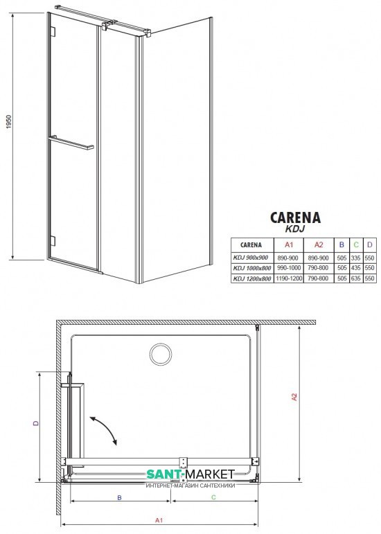 Прямокутна душова кабіна Radaway Carena KDJ 100×80 R (34432-01-01NL) з одностулковими всередину відкриваються лівосторонніми дверима в розмірі 1000 мм і 800 мм . Двері підвішені на пристінні, хромованих петлях з підйомно-опускним механізмом. Можливі лівосторонній та правосторонній варіанти відкриття дверей. Кабіна серії Carena можлива у виконанні двох видів скла.