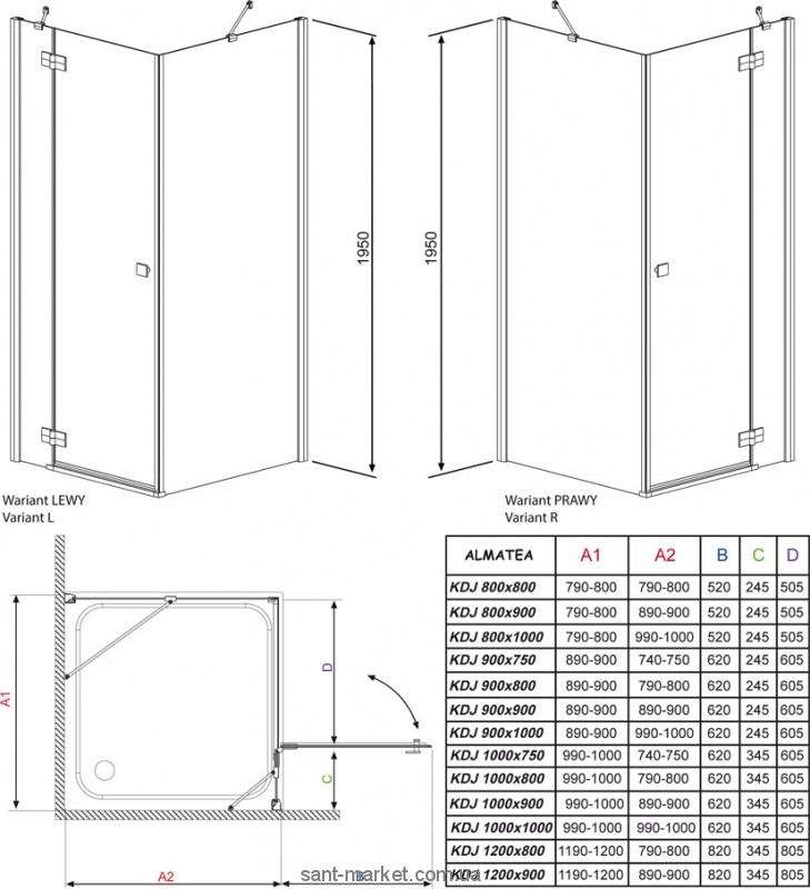 Кабіни серії Almatea дозволяється встановлювати як на піддони, так і безпосередньо на підлогу.