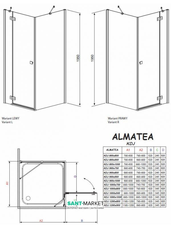 Кабіни серії Almatea допускається встановлювати як на піддони, так і безпосередньо на підлогу.