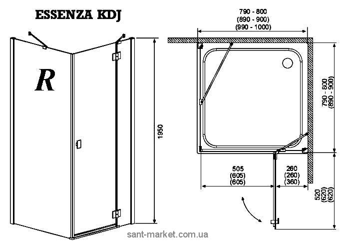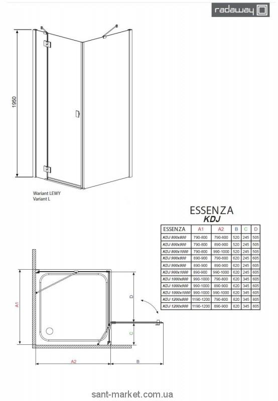 RADAWAY Essenza KDJ - пристінна прямокутна кабіна з одностулковими дверцятами на петлях. Двері підвішені на латунних, хромованих петлях з підйомно-відпускним механізмом та системою позиціонування дверей, відкриваються назовні кабіни створюючи широкий та зручний вхід. Дозволяється встановлювати як на піддони, так і безпосередньо на підлогу.