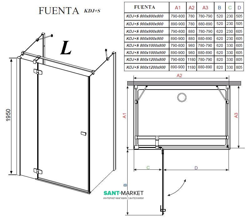 Душова кабіна Radaway EOS Fuenta KDJ + S 90х120х90 без піддону 381034-01R2