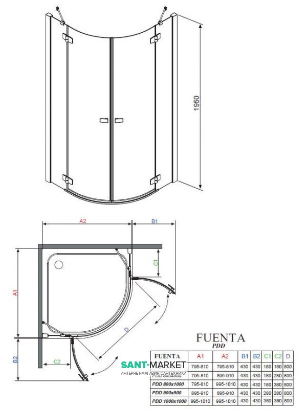 Кабіни серії Fuenta дозволяється встановлювати як на піддони, так і безпосередньо на підлогу.