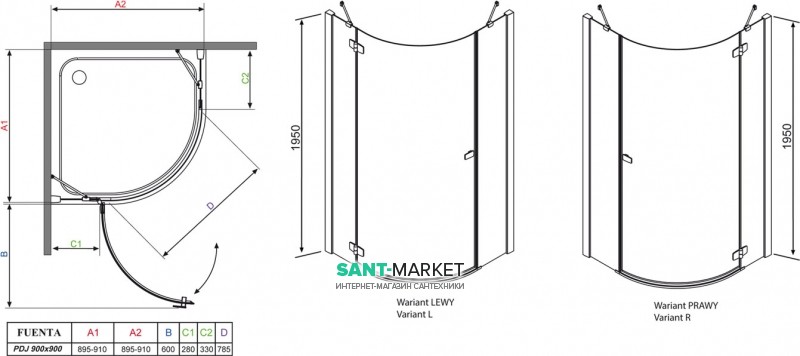 Кабіни серії Fuenta дозволяється встановлювати як на піддони, так і безпосередньо на підлогу.