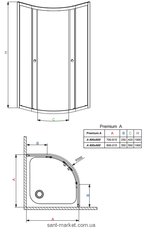 Серія Premium характеризується класичними формами, функціональністю та естетикою технічних рішень.серії входять напівкруглі кабіни висотою 1700 мм, призначені для монтажу на глибоких піддонах і стандартні 1900 мм. У кабінах використовуються подвійні підшипникові ролики, які забезпечують тиху та надійну роботу. Двері кабіни можна розфіксувати для чищення кабіни. Пристінні профіля дозволяють на нівеляцію нерівності стіни до 20 мм з кожного боку. Доступні кольори скла: прозоре, матове, коричневе, графітове та фабрик.