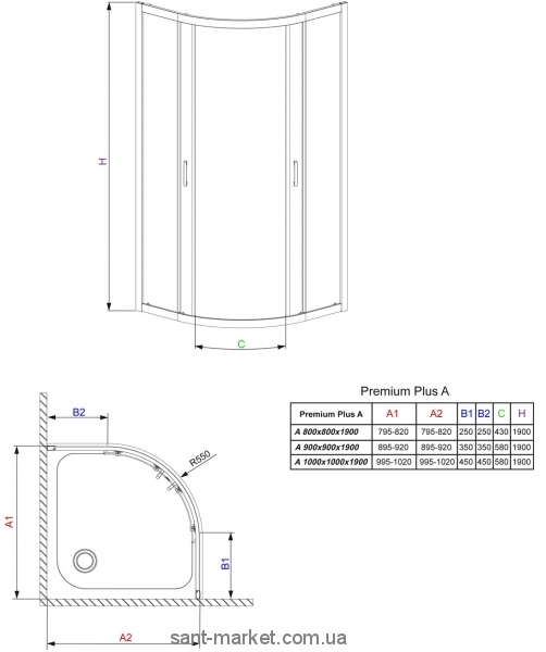 Серія Premium Plus А характеризується класичними формами, функціональністю та естетикоютехнічні рішення. До складу серії входить кілька типів кабін: напівкруглі, напівкруглі тип В, квадратні, асиметричні напівкруглі та пристінні. У кабінах використовуються подвійні підшипникові ролики, які забезпечують тиху та надійну роботу. Двері кабіни можна розфіксувати для чищення кабіни. Пристінні профіля дозволяють на нівеляцію нерівності стіни до 20мм з кожного боку. У кабінах використовується гартоване скло товщиною 5мм із покриттям Easy Clean. Доступні кольори скла: прозоре, сатинато (матове), коричневе, графітове та фабрик.