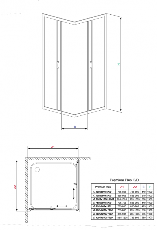 Серія Premium Plus В характеризується класичними формами, функціональністю та естетикою технічнихрішень. До складу серії входить кілька типів кабін: напівкруглі, напівкруглі тип В, квадратні, асиметричні напівкруглі та пристінні. У кабінах використовуються подвійні підшипникові ролики, які забезпечують тиху та надійну роботу. Двері кабіни можна розфіксувати для чищення кабіни. Пристінні профіля дозволяють на нівеляцію нерівності стіни до 20мм з кожного боку. У кабінах використовується гартоване скло товщиною 5мм із покриттям Easy Clean. Доступні кольори скла: прозоре, сатинато (матове), коричневе, графітове та фабрик.