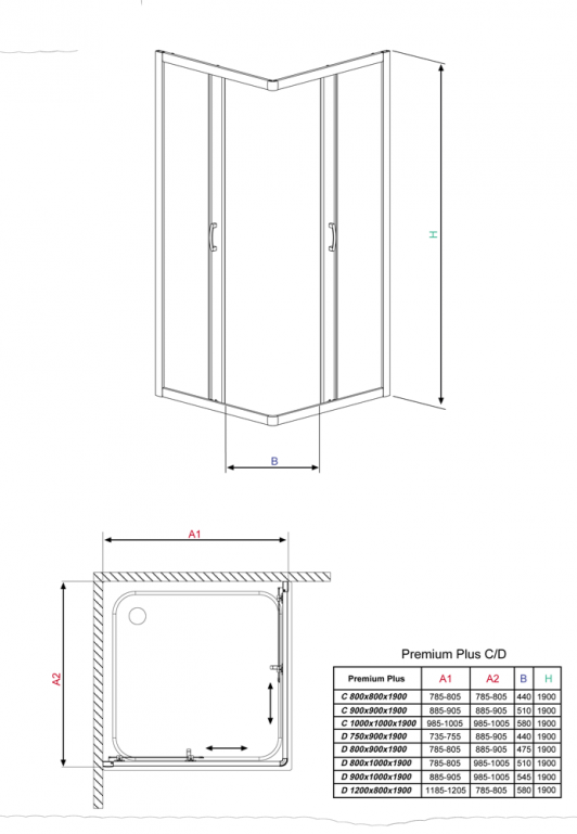 Серія Premium Plus характеризується класичними формами, функціональністю та естетикою технічних рішень. Всклад серії входить кілька типів кабін: напівкруглі, напівкруглі тип В, квадратні, асиметричні напівкруглі та пристінні. У кабінах використовуються подвійні підшипникові ролики, які забезпечують тиху та надійну роботу. Двері кабіни можна розфіксувати для чищення кабіни. Пристінні профіля дозволяють на нівеляцію нерівності стіни до 20мм з кожного боку. У кабінах використовується гартоване скло товщиною 5мм із покриттям Easy Clean. Доступні кольори скла: прозоре, сатинато (матове), коричневе, графітове та фабрик.