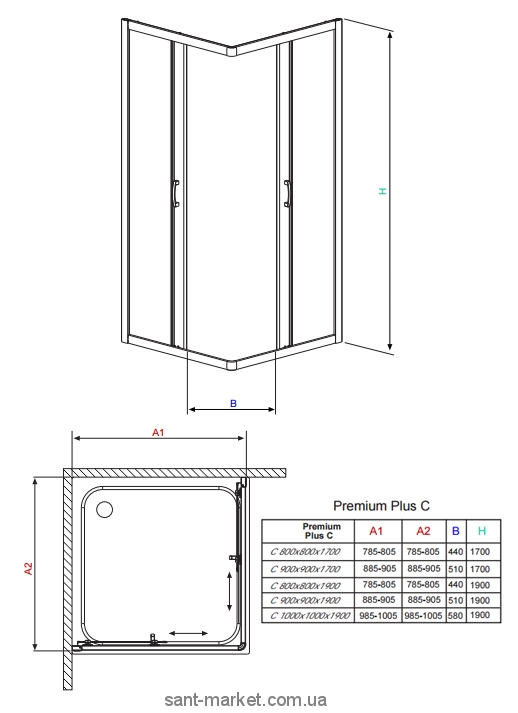 Серія Premium Plus С характеризується класичними формами, функціональністю та естетикою технічнихрішень. До складу серії входить кілька типів кабін: напівкруглі, напівкруглі тип В, квадратні, асиметричні напівкруглі та пристінні. У кабінах використовуються подвійні підшипникові ролики, які забезпечують тиху та надійну роботу. Двері кабіни можна розфіксувати для чищення кабіни. Пристінні профіля дозволяють на нівеляцію нерівності стіни до 20мм з кожного боку. У кабінах використовується гартоване скло товщиною 5мм із покриттям Easy Clean. Доступні кольори скла: прозоре, сатинато (матове), коричневе, графітове та фабрик.
