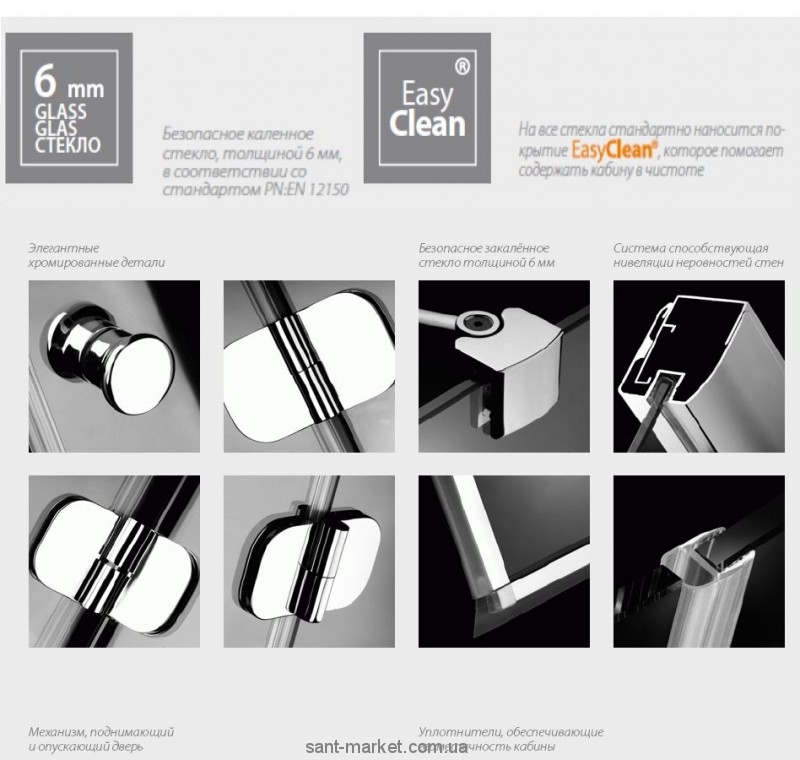 - на всі стекла стандартно наноситься покриття Easy Clean, яке допомагає утримувати кабіну в чистоті;