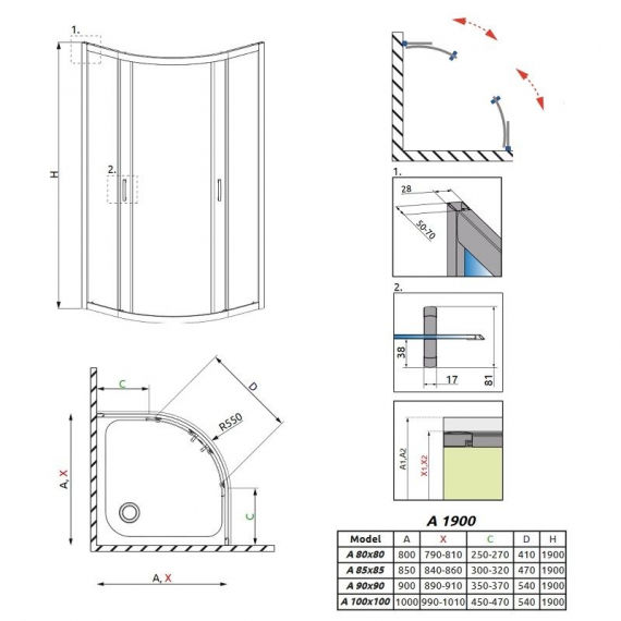 Душова кабіна Premium Plus A має класичну закруглену форму. Колекція Premium Plus характеризується популярними формами, високою функціональністю і естетикою технічних рішень. Колекція Premium Plus це хіт продажів через оптимального співвідношення ціни і якості. Кабіни серії Premium Plus допускається встановлювати як на піддони, так і безпосередньо на підлогу. Головна перевага душової кабіни Premium Plus A цедоступна ціна, а також різноманітність розмірів і варіантів стекол. При нестандартних розмірах простору для монтажу, можна використовувати розширювальні профілю +2 або +4 см для збільшення розміру душової кабіни.