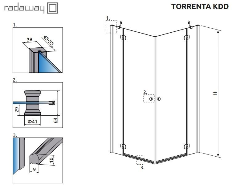 Колекція Torrenta strong> це перевірена часом конструкція за доступну ціну. Двері відкриваються назовні кабіни створюючи широкий і зручний вхід. Стулки двері підвішені на латунних, хромованих петлях з підйомно-опускним механізмом. Кабіни серії Torrenta допускається встановлювати як на піддони, так і безпосередньо на підлогу (на плитку).