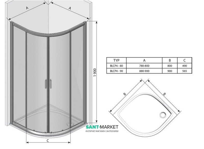 Опис радіусної симетричної душової кабіни Ravak Blix BLCP4-80 (3B240C00Z1)