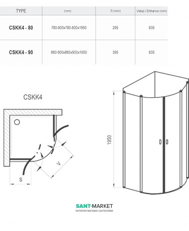 Душова кабіна Ravak Chrome 90х90х195 без піддону CSKK4-90 3Q170100Z1