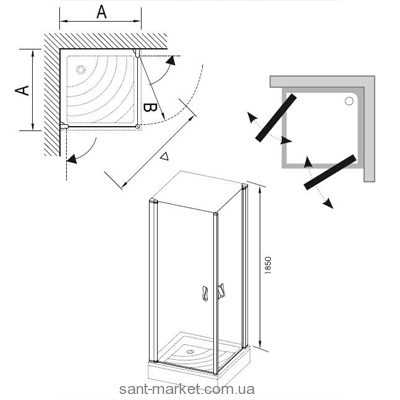 Встановлюється в облицьований кахлем кут ванної кімнати на піддони RAVAK Angela, Perseus, Perseus Pro, Perseus Pro Flat, Perseus Pro Chrome або безпосередньо на підлогу з вбудованим душовим каналом. Ручки замовляються окремо, до комплекту завжди входить 1 пара ручок. Для цього виробу необхідно замовити дві пари ручок. Можливе виготовлення атипового душового куточка.