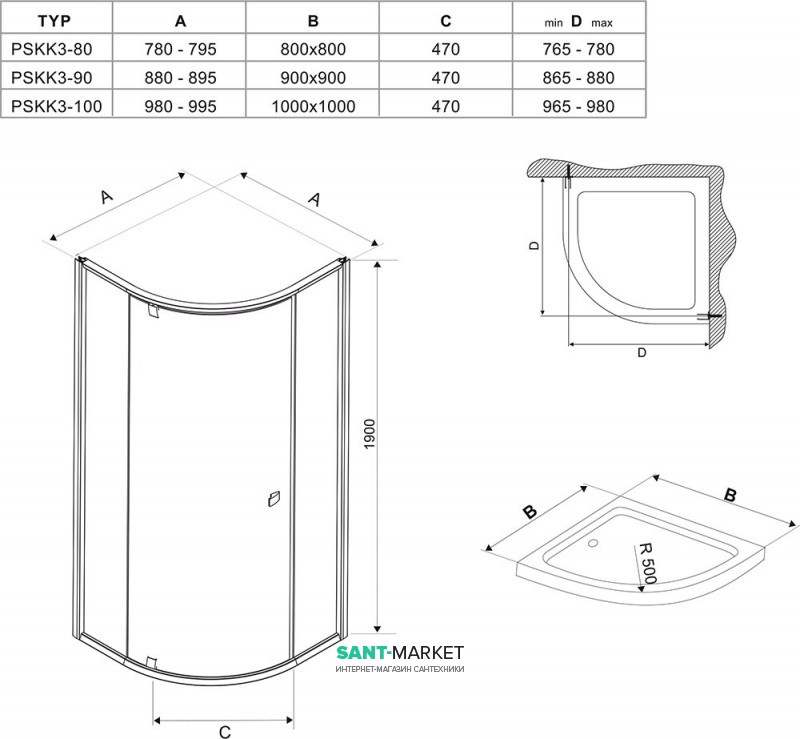 Опис радіусної симетричної душової кабіни Ravak Pivot PSKK3-80 (37644100Z1)