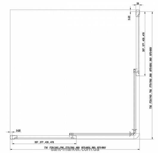 - розсувна система з надійною системою роликів (забезпечує тиху та надійну роботу душового куточка);