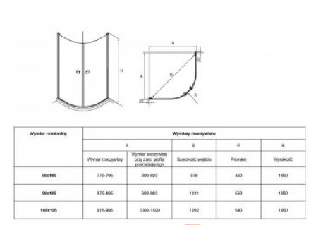 1) Душова кабіна Roca Capital Rondo без нерухомих бічних стінок профіль алюміній хром прозоре скло