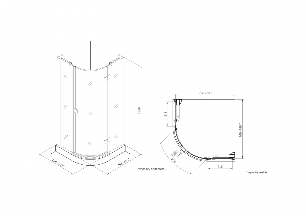 1) Душова кабіна Roca Metropolis Rondo 80х80 профіль алюміній хром прозоре скло