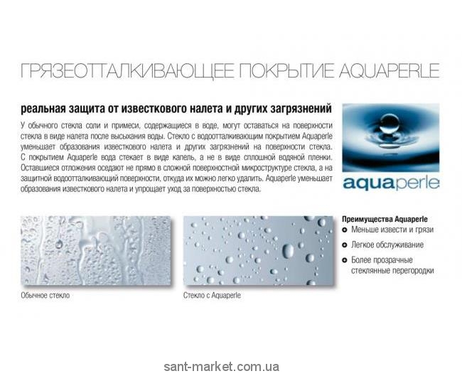 Душові кабіни San Swiss забезпечують ідеальну герметичність при прийнятті душу, а також є альтернативою для всіх, хто хоче отримати щоденне задоволення від прийняття душу. Завдяки системі Aquaperle струмінь води, що стікає по обробленому склу, не утворює зв'язну плівку, а з'єднується у зв'язки і більш ефективно сковзає, не залишає на склі крапель, які після висихання залишають сліди.