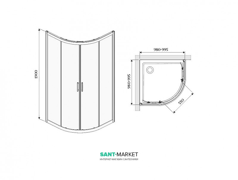 Душова кабіна SANPLAST 100х100х190 KP4 / TX5-100-S sb CR
