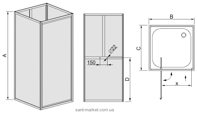 Душова кабіна Sanplast 90х90х185 без піддону KC / DJ-90 biP