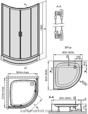 Кабіна кутова напівкругла KP4/TX4b+BPza з розсувними дверима виконується з безпечного скла завтовшки 4 мм. Ходова система складається з наборів подвійних підшипникових верхніх роликів встановлених на листі скла і одиночних нижніх роликів, що відстібаються. Герметичність гарантує магнітний ущільнювач. Зручне пересування дверей гарантує ергономічні, хромовані ручки. Кабіна комплектується литим акриловим піддоном глибиною 5 см із сифоном.