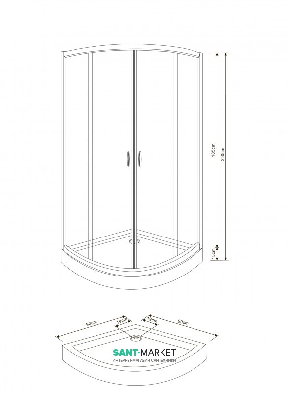Душова кабіна Volle Fiesta 90х90х200 низький піддон 10-22-157