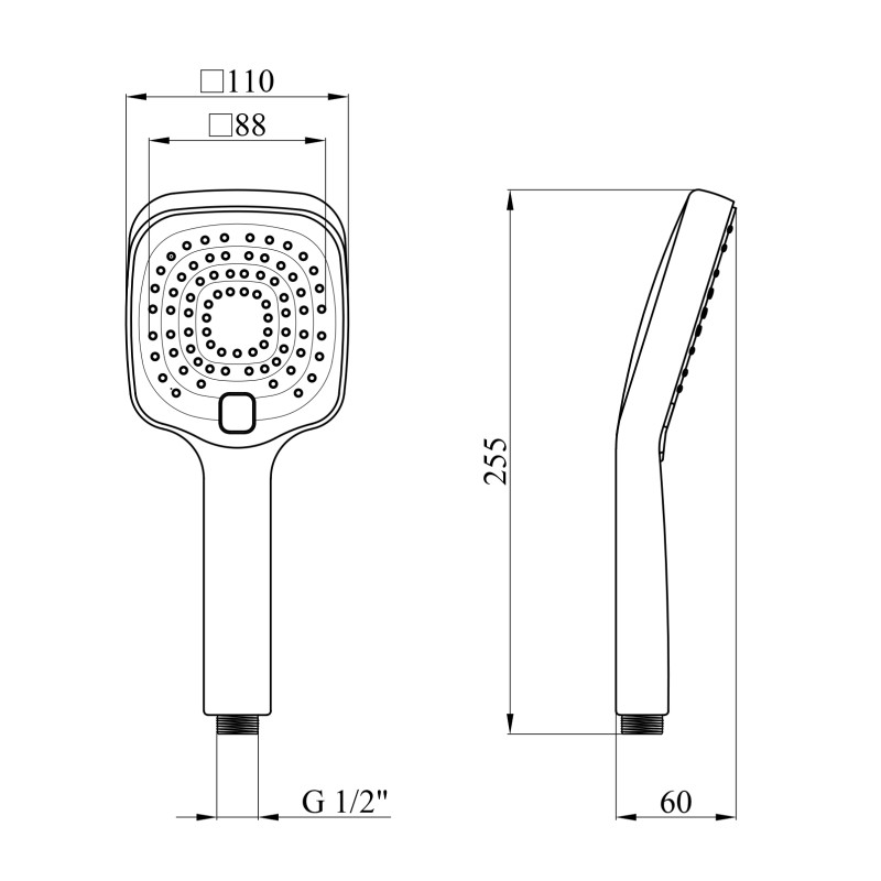 Конструкція та матеріали: АБС-пластик з двошаровим нікель-хромованим покриттям, з’єднання 1/2", квадратна форма.