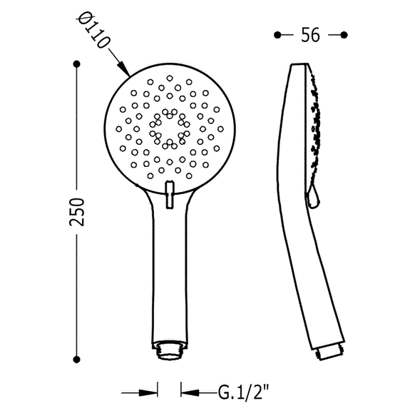 1) Душова лійка Tres з гідромасажем 3 типи струменя хром