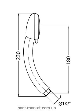 Конструкція представленої пластикової лійки включає циліндричну симетрично вигнуту ручку, що врізається в невелику обтічну лійку у формі незавершеного кола. Нижня поверхня лійки злегка опукла і має отвори для випуску води, розташовані в три кола. У нижній частині лійки біля ручки знаходиться акуратний плоский перемикач типів струменя. Крім цього представлений ручний душ має захист від кальцієвого забруднення. Шланг з'єднується з ручкою за допомогою різьбового з'єднання G 1/2