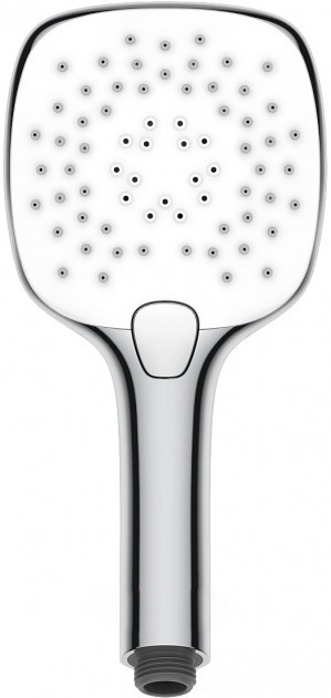 Квадратна, з округлими краями ручна трехструйная лійка для душа W107SQT3 від Imprese, має розмір душової поверхні (ВхШ) 10.7 х 10.7 см, виконана з ABS-пластика з покриттям блискучого і білого кольору, і оснащується підведенням для підключення душового шланга під діаметр 1/2 ".