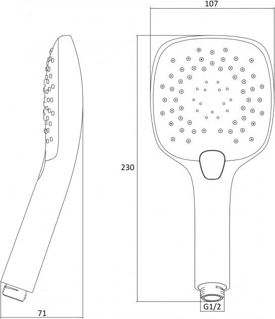 - Діаметр ручної лійки: Квадратна: 10.7 х 10.7 см